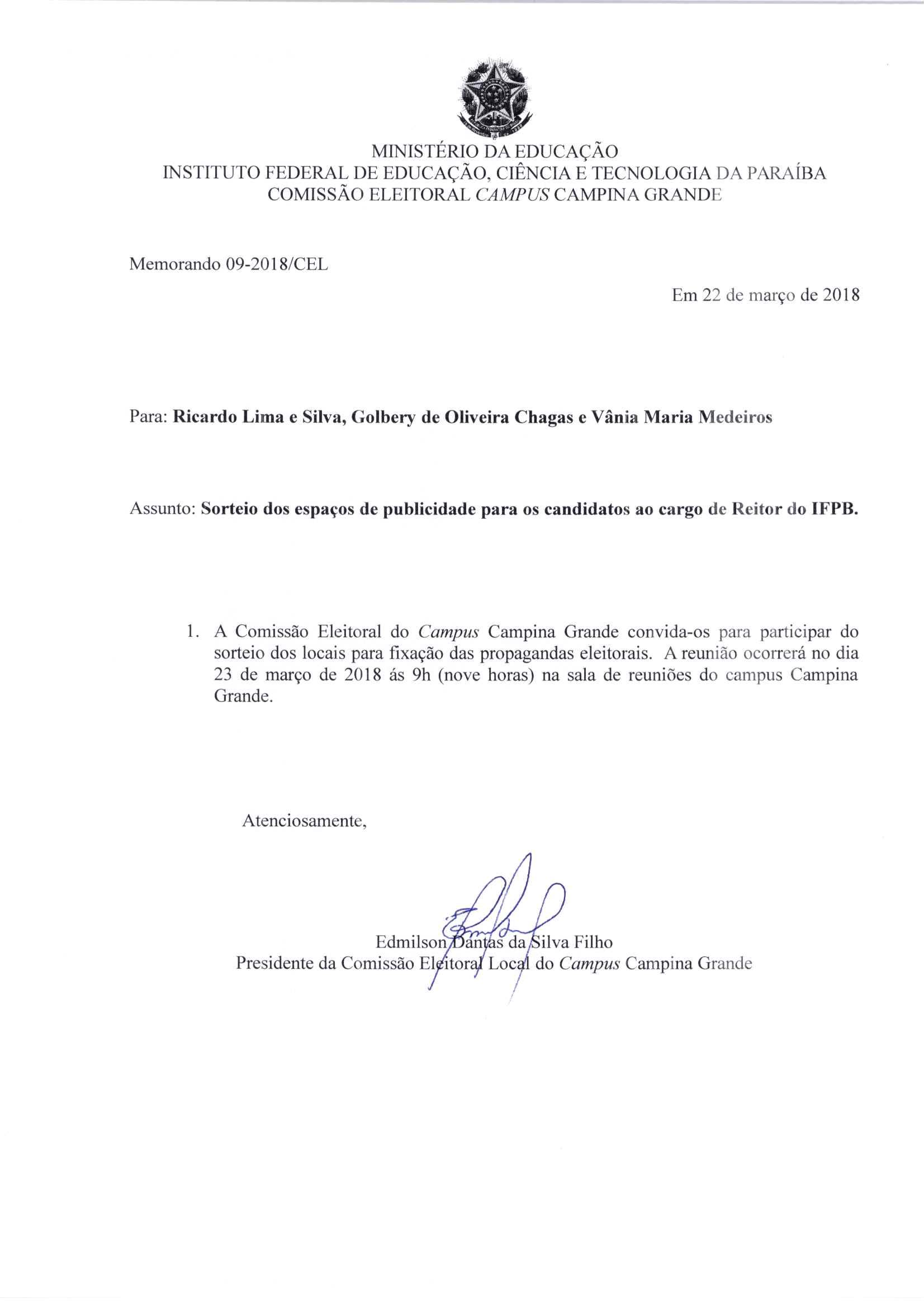 | 28/03/2018 | Memorando Candidato José Albino |