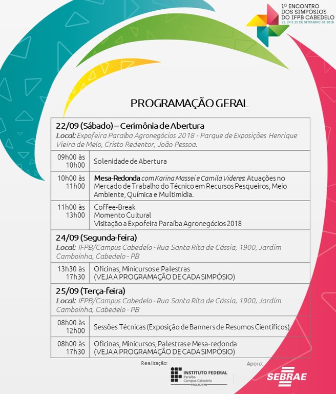Você está aqui: Página Inicial > Cabedelo > Notícias > 2018 > 09 > Tem início o 1º Encontro dos Simpósios do IFPB Cabedelo