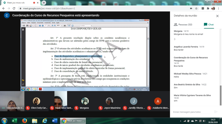 Ao todo, foram 27 reuniões realizadas, envolvendo servidores, pais de alunos e estudantes por curso e turma através da ferramenta Meet