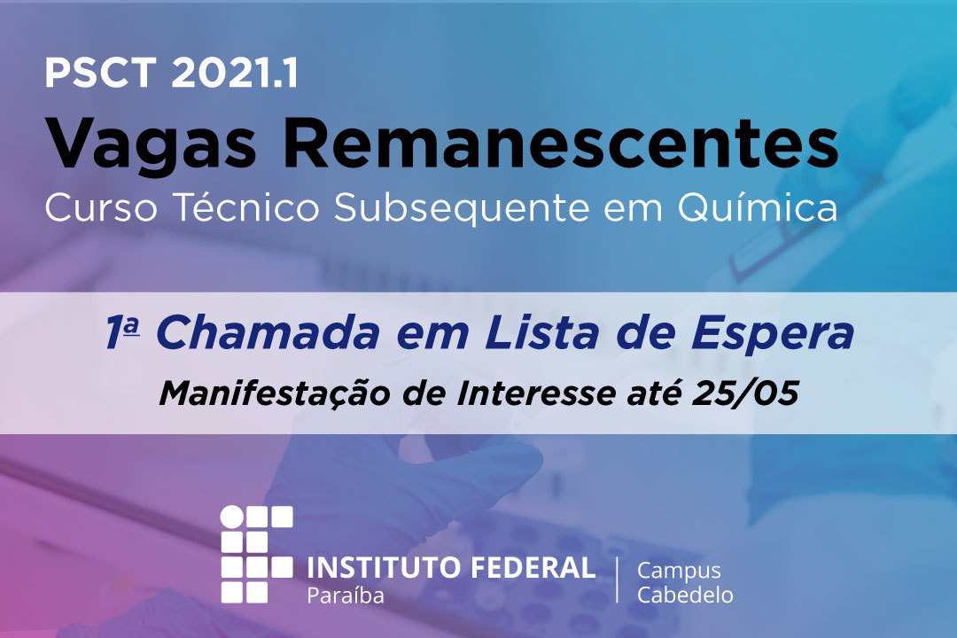 Campus Cabedelo divulga edital de 1ª Manifestação de Interesse em Lista de Espera do PSCT 2021.1 (vagas remanescentes)