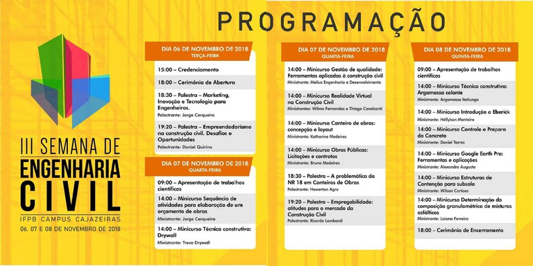 Atividades da Semana de Engenharia Civil começam nesta terça (06)
