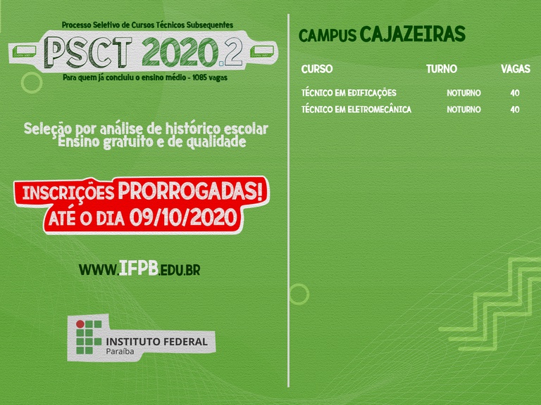 Inscrições para os Cursos Técnicos Subsequentes do IFPB são prorrogadas