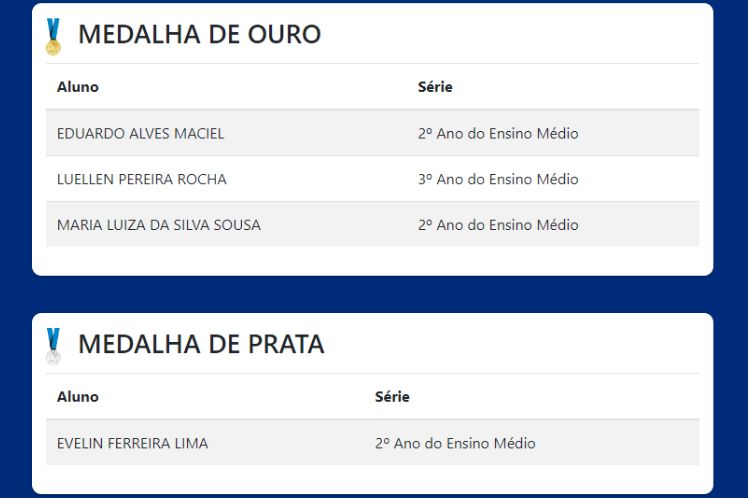 Estudantes se destacam na Olimpíada Nacional de Ciências