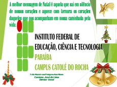 O IFPB Campus Catolé do Rocha, na pessoa do seu Diretor Geral - Prof. Caetano José de Lima, deseja a todos os alunos, servidores, seus familiares, e a comunidade de Catolé do Rocha e região um Feliz Natal e um Ano Novo de muita saúde, paz e prosperidade.