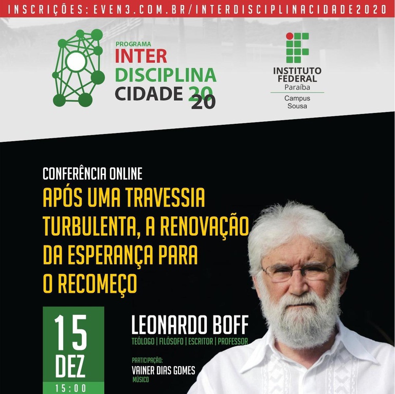 Encerramento do Programa Interdisciplinacidade 2020 terá conferência do filósofo Leonardo Boff