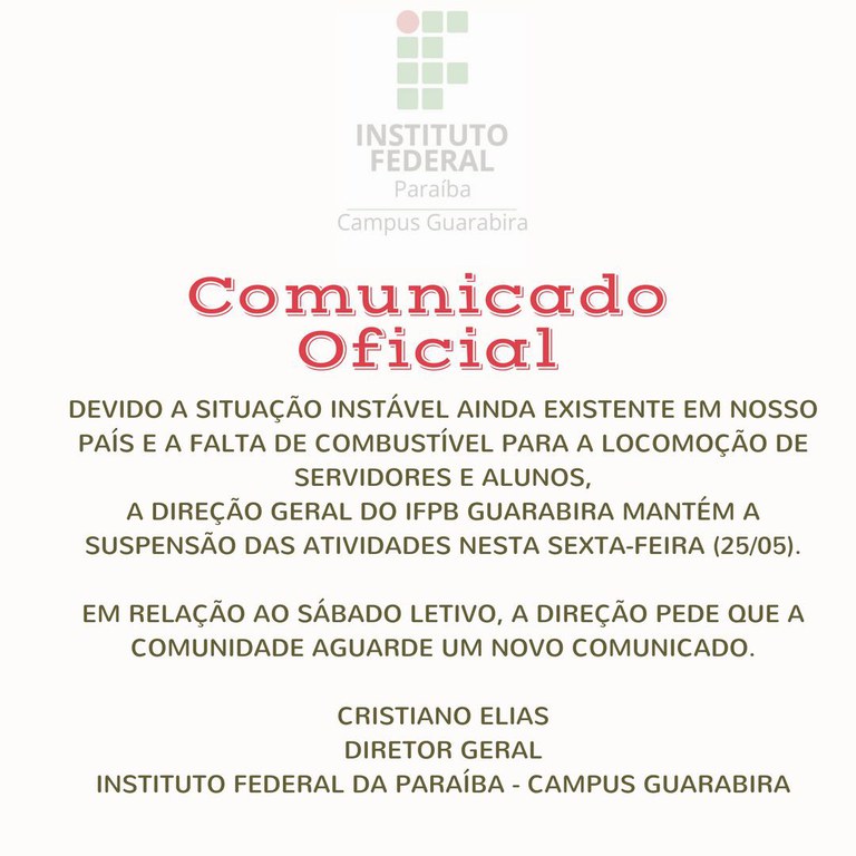 Comunicado Oficial - Direção Geral