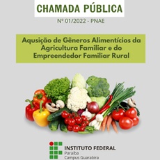 O Instituto Federal de Educação Ciência e Tecnologia - Campus Guarabira torna público o Edital de Chamada Pública nº 01/2022 para a aquisição de gêneros alimentícios para a composição de kits de alimentos da Agricultura Familiar e do Empreendedor Familiar Rural, em atendimento ao Programa Nacional de Alimentação Escolar – PNAE, para atender aos alunos matriculados na Educação Básica, conforme determina a legislação, durante o período de 2022.