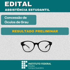 A Direção Geral do Instituto Federal de Educação, Ciência e Tecnologia da Paraíba - campus Guarabira , no uso de suas atribuições estatutárias e regimentais, por meio da Coordenação Pedagógica e de Assistência ao Estudante (COPAE), torna público o resultado preliminar do Edital Nº 09/2022 referente ao PROGRAMA DE ATENÇÃO E PROMOÇÃO DA SAÚDE – CONCESSÃO DE ÓCULOS DE GRAU (CLIQUE AQUI).