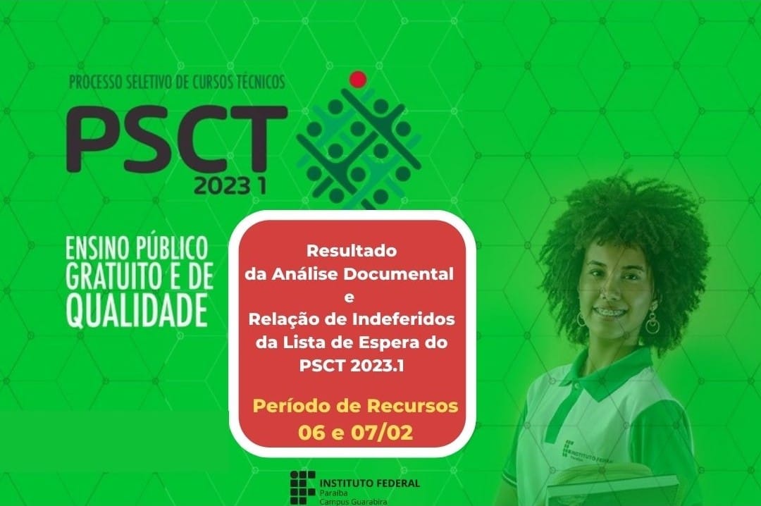 Campus Guarabira publica Edital de resultado da análise documental e relação de indeferidos da 1ª chamada da Lista de Espera PSCT 2023.1