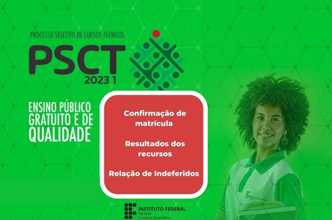 Divulgado Edital de Confirmação de Matrícula, Resultado dos Recursos e Relação de Indeferidos da 1ª Chamada para manifestação de interesse em matrícula dos candidatos pré-classificados por meio da Lista de Espera do processo seletivo de cursos técnicos 2023 para os cursos integrados do campus Guarabira.