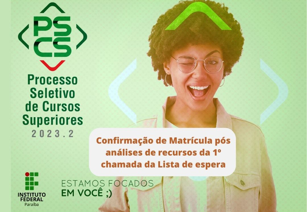 Campus Guarabira divulga confirmação de matrícula, resultado dos recursos e relação de indeferidos da 1ª chamada da Lista de Espera do PSCS 2023.2