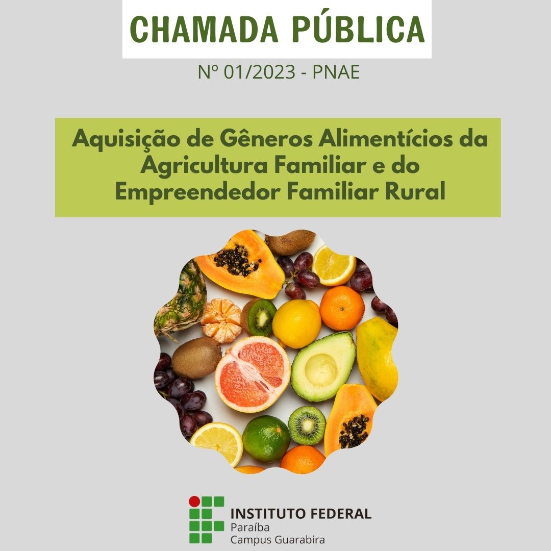 Campus Guarabira realiza chamada pública para a aquisição de gêneros alimentícios voltado ao Programa Nacional de Alimentação Escolar – PNAE