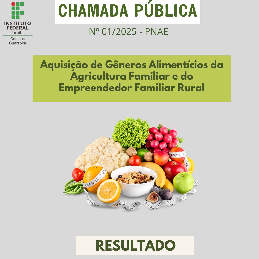Campus Guarabira divulga o resultado da Chamada Pública nº 01/2025 - PNAE