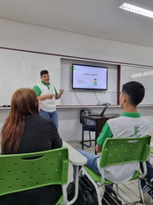 O estudante José Wagnner Hugo da Silva, 15 anos, aluno do 1° ano do Curso Técnico Integrado em Automação Industrial, assiste às aulas em formato bilíngue. As aulas são pautadas na adaptação de material didático, construção de processos de tradução, associação entre conceitos e formas da língua portuguesa e a língua de sinais e, sobretudo, no incentivo da aprendizagem do aluno tanto sobre a Libras quanto sobre o português escrito.