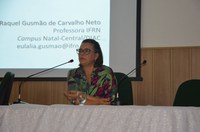 Eulália Gusmão fez um relato de experiência sobre a implantação de um Projeto Integrador realizado no Campus Natal Central do IFRN. A professora apontou como objetivos do trabalho ter a visão da totalidade da realidade e a interdisciplinaridade como princípio. "É preciso que haja uma aproximação do conhecimento das diferentes áreas, além de considerar o trabalho como princípio educativo e a pesquisa como princípio pedagógico", revelou.