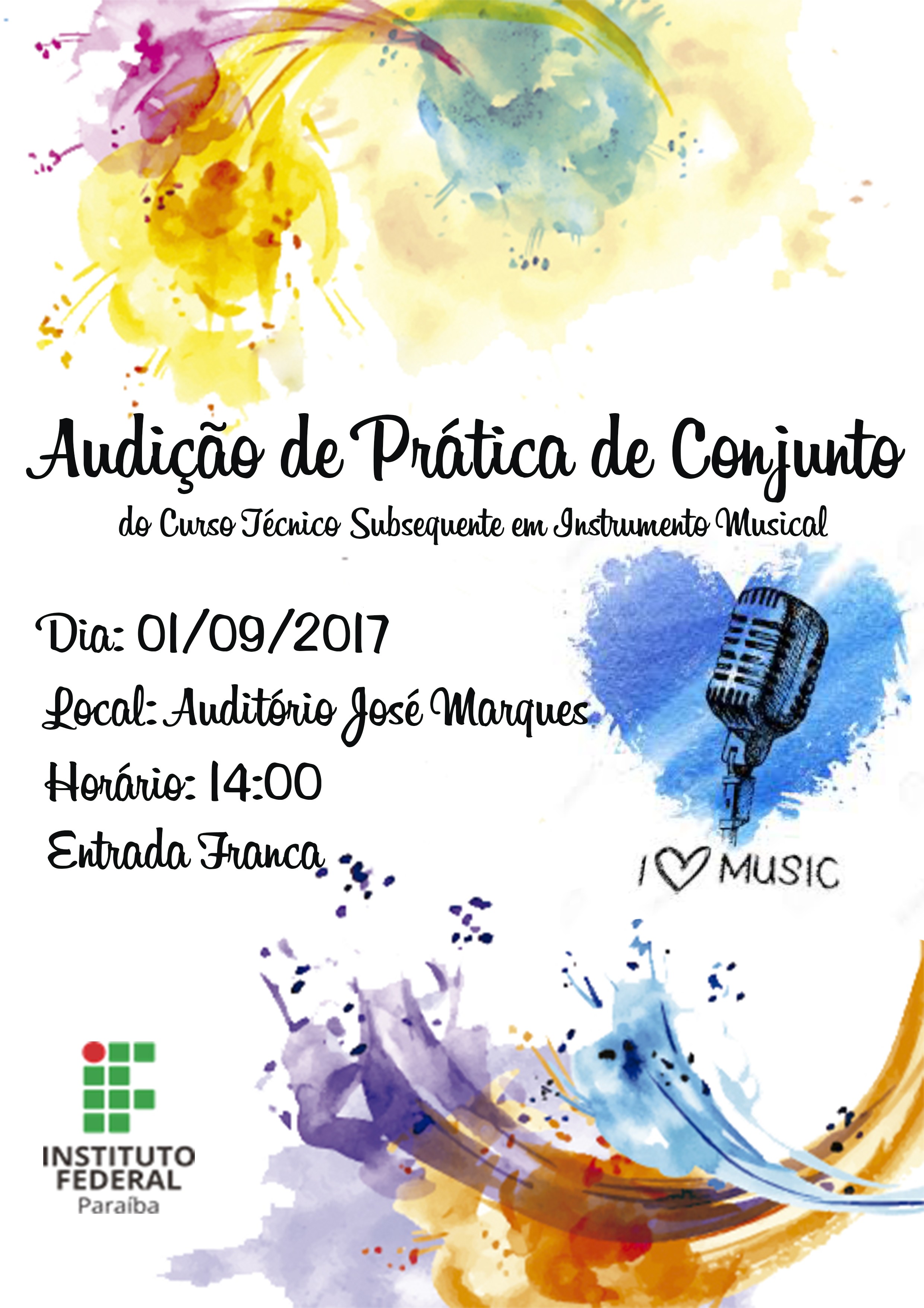 Estudantes do Curso de Instrumento Musical farão audição nesta sexta-feira (01)
