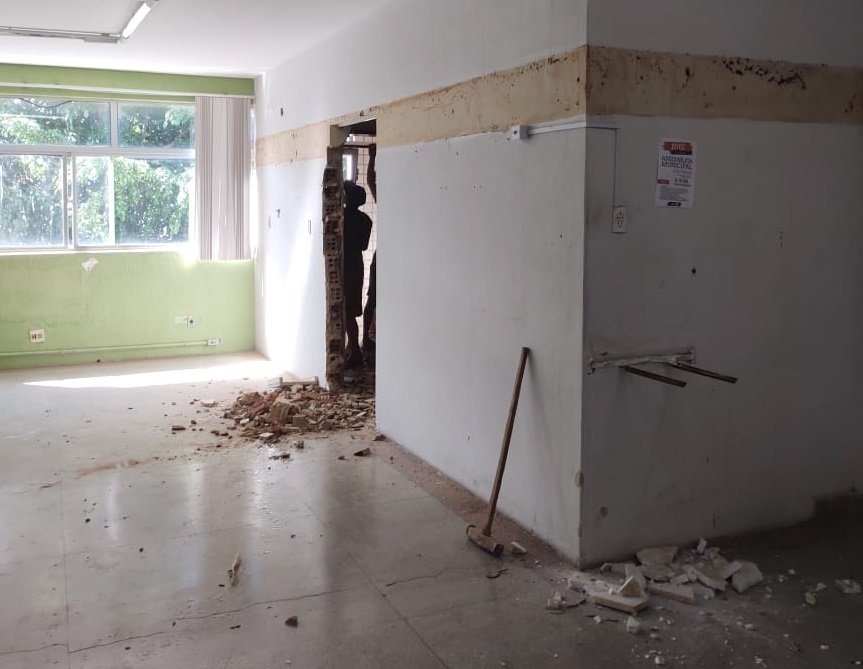 Iniciadas reformas na sala dos professores e no laboratório de Sistemas Construtivos
