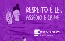 “Respeito é Lei! Assédio é Crime!” é o tema da programação em alusão ao Dia da Mulher do IFPB Campus João Pessoa. O evento ocorrerá no dia 08 de março, nos turnos da manhã e tarde, com diversas atividades propostas. A iniciativa é da Coordenação de Promoção Social e Qualidade de Vida e Departamento de Gestão e Desenvolvimento de Pessoas. Confira a programação nesse link.