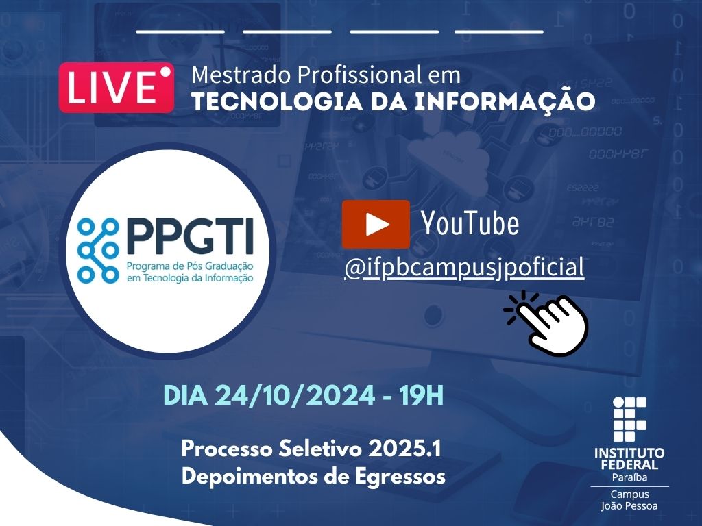 PPGTI realiza Live sobre o Processo Seletivo 2025.1 do Mestrado Profissional em Tecnologia da Informação