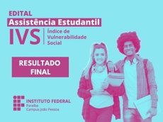 O Campus João Pessoa publicou nesta segunda-feira (11), o resultado final do edital nº 01/2022 para solicitação de análise do Índice de Vulnerabilidade Social (IVS). O resultado está disponível nesse link.