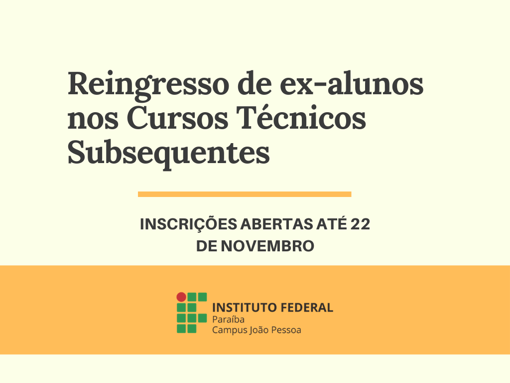 Abertas inscrições para Reingresso nos Cursos Técnicos Subsequentes