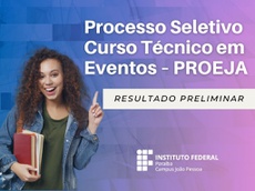 A Coordenação Curso Técnico em Eventos Integrado ao Ensino Médio, da Modalidade de Educação de Jovens e Adultos – PROEJA do IFPB Campus João Pessoa publicou no dia 14 de julho o resultado preliminar do processo seletivo para ingresso no segundo semestre de 2023. Confira o resultado nesse link.