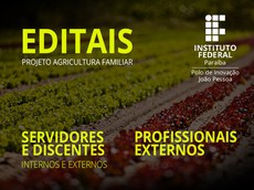 O Polo de Inovação do IFPB divulgou edital para preenchimento de vagas remanescentes de pessoal (servidores e discentes) para atuarem como pesquisadores e extensionistas do Projeto de Agricultura Familiar, desenvolvido em parceria com a Secretaria Especial de Agricultura Familiar e Desenvolvimento Agrário (SEAD). As inscrições vão até o dia 26/11.