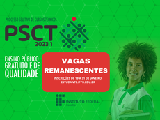 O Instituto Federal da Paraíba-IFPB abriu inscrições no período de 19 de janeiro a 31 de janeiro de 2023 para preenchimento de vagas remanescentes do Processo Seletivo dos Cursos Técnicos Presenciais , para ingresso na modalidade Subsequente ao Ensino Médio no primeiro semestre letivo de 2023. No total, o IFPB está disponibilizando gratuitamente 132 vagas distribuídas entre os Campi Cabedelo, Picuí, Princesa Isabel e Sousa.