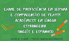 A Pró-Reitoria de Pesquisa Inovação e Pós-Graduação (PRPIPG) e a Assessoria de Relações Institucionais e Internacionais (Arinter) do Instituto Federal da Paraíba divulgaram edital de inscrições para o Exame de Proficiência em Leitura e Compreensão de Textos em Línguas Estrangeiras. Os idiomas disponíveis são Inglês e Espanhol.