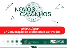 A Coordenação Geral da Rede e-Tec Brasil no âmbito do IFPB realiza a 1ª convocação de selecionados habilitados através do EDITAL nº 37/2020 para atuação do Programa Novos Caminhos. Os candidatos devem realizar o cadastramento e enviar a documentação exigida pelo edital até o dia 17 de setembro de 2020. Todo o processo de cadastramento será de forma remota, através de Formulário Eletrônico, e por meio do próprio formulário os candidatos deverão encaminhar toda a documentação.