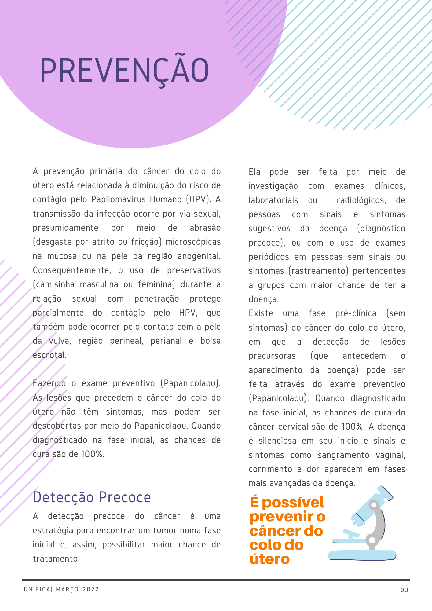 Campanha Março Lilás lembra a importância da prevenção ao câncer de colo do útero