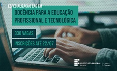 A Pró-Reitoria de Pesquisa Inovação e Pós-Graduação (PRPIPG) do IFPB abriu seleção para estudantes do curso de Especialização em Docência para a Educação Profissional e Tecnológica. São 330 vagas distribuídas entre o campus Cabedelo do Instituto Federal da Paraíba, responsável pela oferta, e outros 15 polos. O curso é na modalidade de Educação à Distância (EaD).