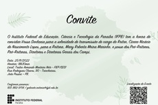 Na oportunidade o ex-reitor Nicácio Lopes transmite o cargo para a reitora Mary Roberta, eleita em abril passado com 92,61% dos votos válidos pela comunidade acadêmica, um resultado que se consagra como a mais bem votada na história da Rede Federal. No mês passado foi publicado o decreto de nomeação da nova reitora no Diário Oficial da União. Ela ficará à frente da Instituição até 2026.