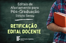 O Instituto Federal de Educação da Paraíba publicou ontem (19/12) uma retificação do Edital IFPB nº 179/2024, que seleciona servidores docentes para afastamento para pós-graduação stricto sensu.