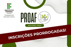 A Pró-Reitoria de Extensão e Cultura (Proexc) do Instituto Federal da Paraíba prorrogou o prazo de inscrições de propostas no edital do Programa Institucional de Apoio e Fortalecimento da Agricultura Familiar (PROAF). Os interessados têm até o dia 12 de maio para submeter proposta no Suap.