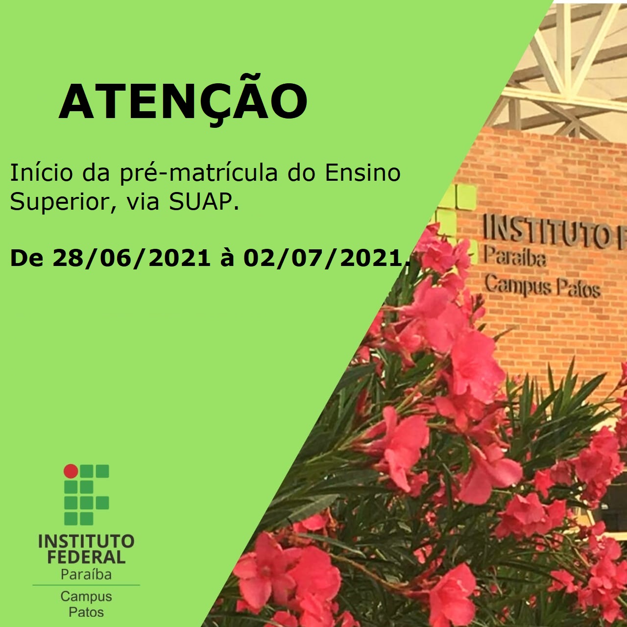 Campus Patos publicado período de pré-matrícula dos Cursos Superiores