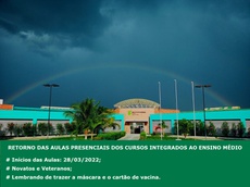 O Instituto Federal da Paraíba - Campus Patos, através da Direção Geral, orienta os alunos dos cursos Integrados ao Ensino Médio que vão retornar as aulas presenciais nesta segunda-feira (28/03), que serão obrigatório o uso das máscaras e apresentarem o Cartão de Vacina da COVID-19.
