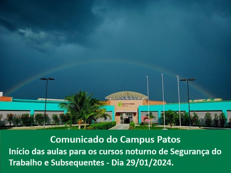 IFPB Campus Patos comunica início das aulas dos cursos Superior e Subsequentes