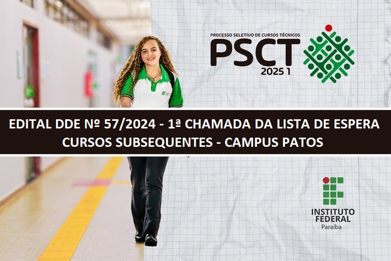 Campus Patos publica Edital de 1ª Chamada do PSCT 2025, cursos Subsequentes
