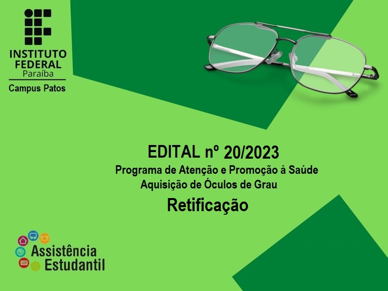 Campus Patos retifica Edital de aquisição de óculos de grau para alunos