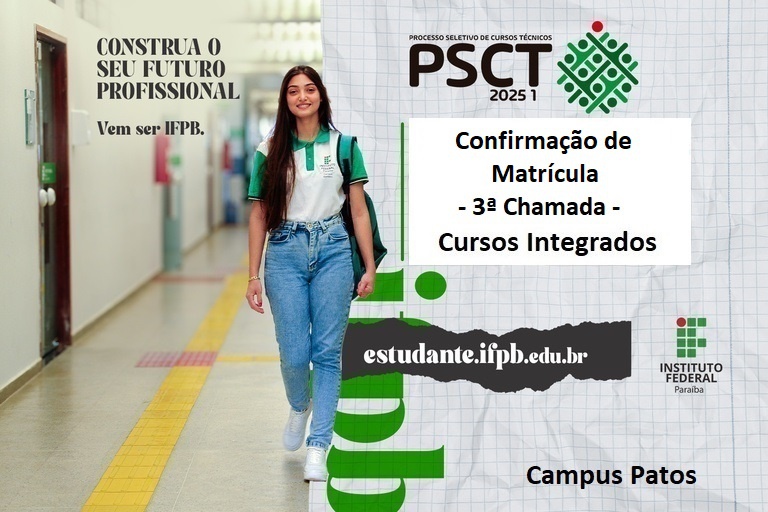 Campus Patos publica confirmação de matrícula da 3ª Chamada do PSCT 2025, cursos Integrados