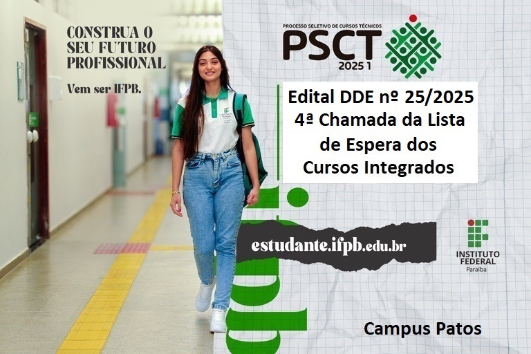Campus Patos publica Edital de 4ª Chamada do PSCT 2025, cursos Integrados