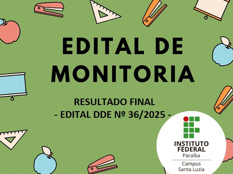 Resultado final do Edital 36/2025, do Programa de Monitoria para o ano letivo de 2025 dos cursos Integrados.