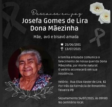 O velório acontece na Rua Eliza Xavier de Lira, 82, por trás da Farmácia de Renatinho, cidade de Teixeira-PB.