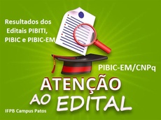 O Instituto Federal de Educação, Ciência e Tecnologia da Paraíba - IFPB, Campus Patos, através da Direção Geral e da Coordenação de Pesquisa, no uso de suas atribuições, torna público o Resultado Final dos Editais PIBITI, PIBIC e PIBIC/EM de nºs 03, 04 e 05/2025, que visam selecionar os discentes bolsistas para atuarem nos projetos de pesquisa aprovados no Programa Institucional Programa Institucional de Bolsas de Iniciação Científica.