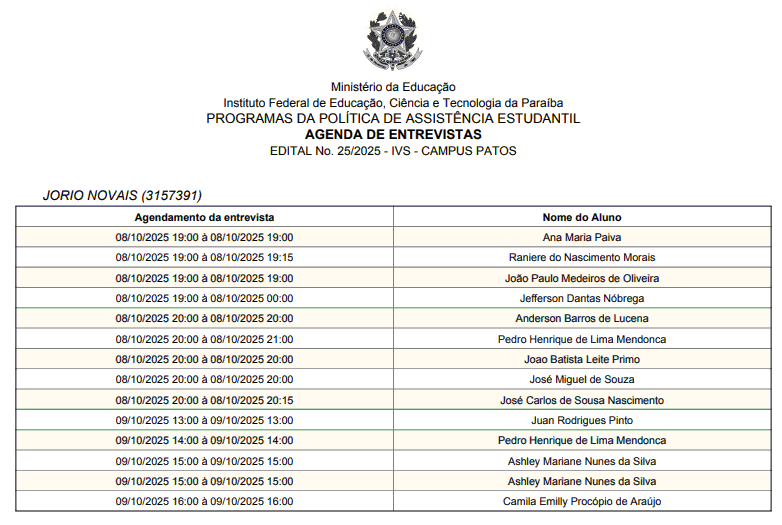 Campus Patos publica calendário de entrevista do Índice de Vulnerabilidade Social