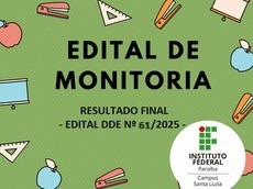 Resultado final do Edital 61/2025, do Programa de Monitoria, ano letivo de 2025 dos cursos Superiores
