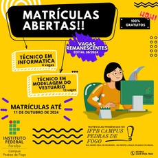 Campus Pedras de Fogo oferta vagas remanescentes para os cursos subsequentes de informática e modelagem do vestuário