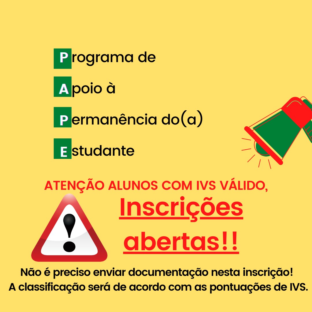 Abertas inscrições para o Programa de Apoio à Permanência do Estudante (PAPE)