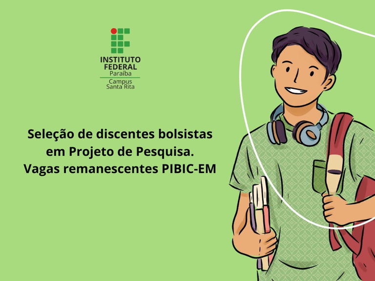 Você está aqui: Página Inicial > Santa Rita > Notícias > 2023 > 09 > IFPB Santa Rita abre Seleção de Bolsistas para Projeto de Pesquisa